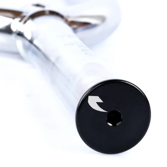 The Tall Order Setup fork uses slim profile triple butted tapered legs for extra strength and feature a peg notch at the bottom for peg and hub guard clearance. The dropouts are CNC 5mm thick and lightened. The steerer tube is extended for gyro compatibility.